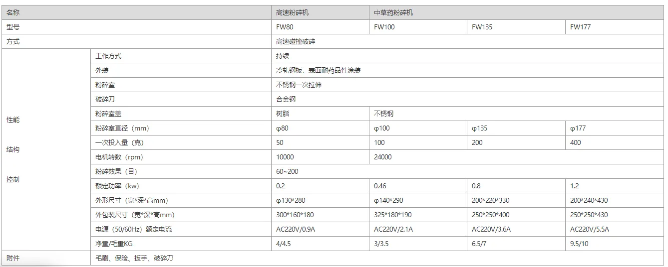 高速万能粉碎机技术参数: