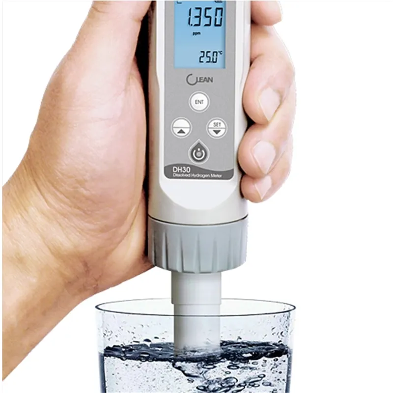 DH30P的设计是藉由极谱法,测量溶解氢的分压。氢水中的氢分子透过电极的选择性半透膜进入充满电解液的电极腔,在阴阳两极的极化电压下,产生与溶氢浓度相关的电流,依据电流大小,温度补偿,得到溶氢浓度值。 此法的量测范围可达8ppm, 选择性地针对溶解氢测量,不受其他还原物质干扰。